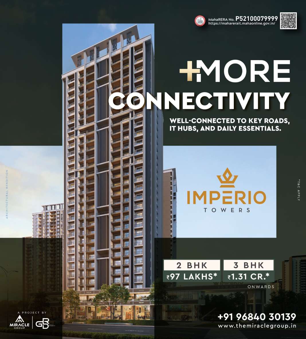 Welcome to Miracle Group’s flagship residential project, Miracle Imperio, at Tathawade. Sprawling across 6 acres, this development redefines luxury and exclusivity in Pune West.